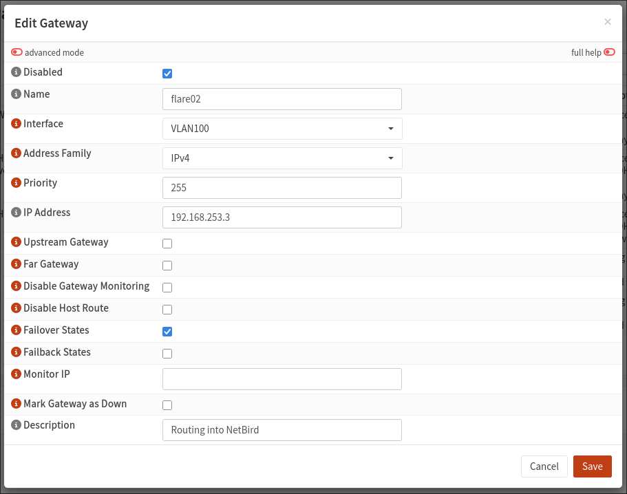 If you choose this method, good luck! It didn’t work out for me but you may have more luck. Just ensure that a lower metric setting in your NetBird routing peers matches a stronger tier in OPNSense (Tier 1 should have the lowest metric). Contact me if you have success with this, I’d be interested to implement it myself and update this post.
