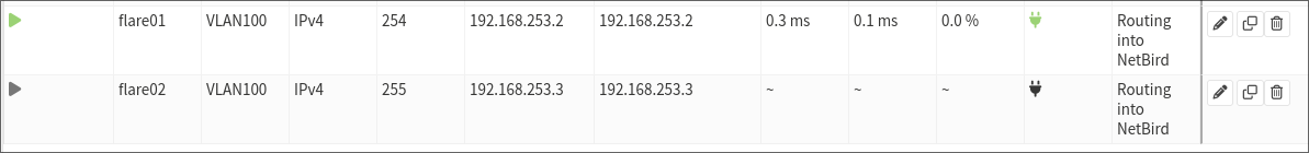 The caveat of this method is that only one gateway is effective for a route at a time. This is fine if you have one routing peer, and can work in theory as with some debugging you can see that which gateway is active and then turn the other one off in NetBird. Unfortunately though, enabling both in OPNSense at the same time still won’t result in real HA as when one goes down you’ll still have to enable the other in NetBird, and it can be flaky when OPNSense or NetBird start routing things through a different gateway as there doesn’t seem to be a guarantee that traffic will start going through the original when it comes back up.